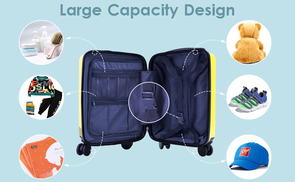 • 【Perfect Size】Lightweight hard shell kids luggage and backpack, hard shell made from ABS Plastic. Luggage size is 18.0” x 11.5” x 8.0” (includes wheels and handle). Backpack size is 13.0" x 10.0" x 4.5".