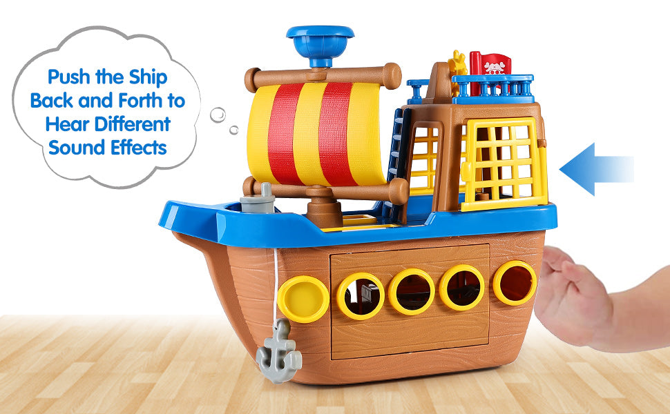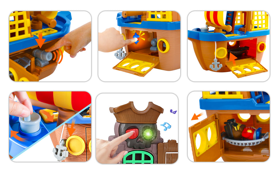 - Build Skills: Develop many of your child's skills with our pirate ship playset. It helps improve children's fine motor skills, cognitive ability and communication skills while playing, as well as encourages imaginative play and creates more interesting pirate adventure scenes.