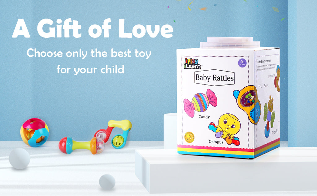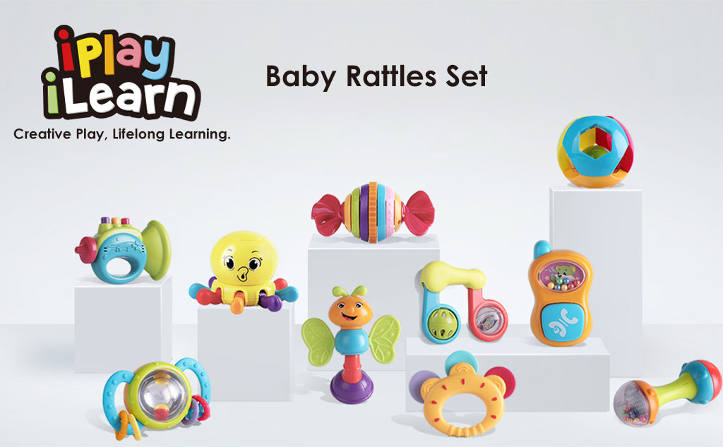 This best selling 10 pcs Baby Rattle Set comes with a variety of different rattles that are guaranteed to keep your baby entertained and occupied. Each rattle has it's own unique design and features to build early learning skills in young infants.