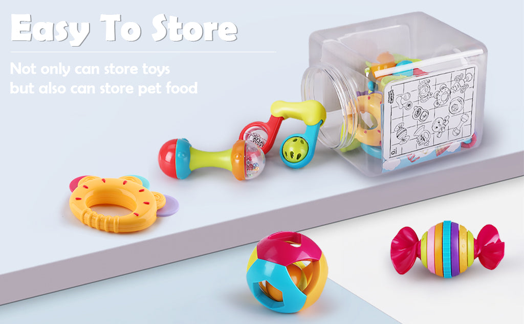 - Great gift for baby showers, suitable for nursery child care - easy to clean and store hygienically in their own container. Great stroller toy.