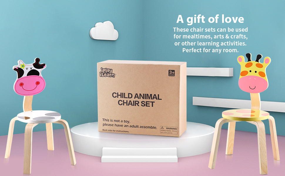 The cute animal chairs are specially designed for kids and brings happiness to your children. Smooth surface, easily cleaned. Instructions and all components included. Each chair set has passed safety quality testing and is safe for children.
