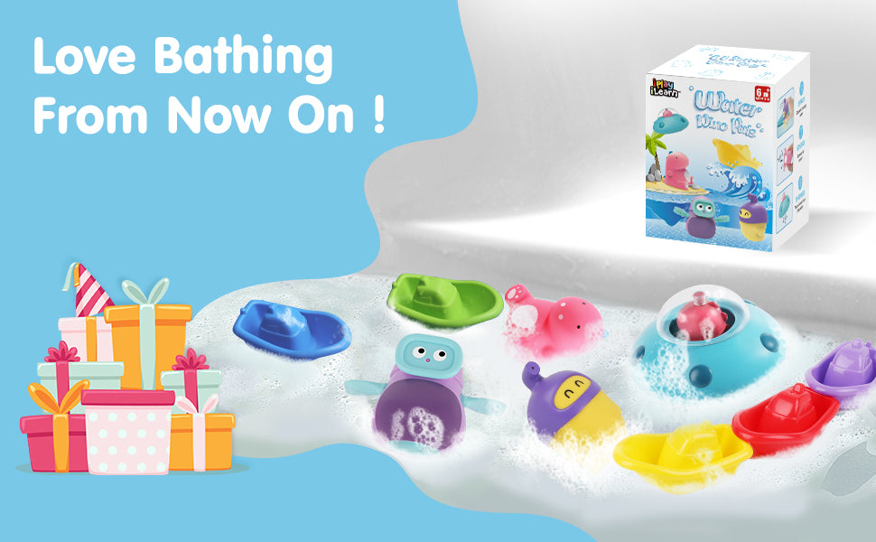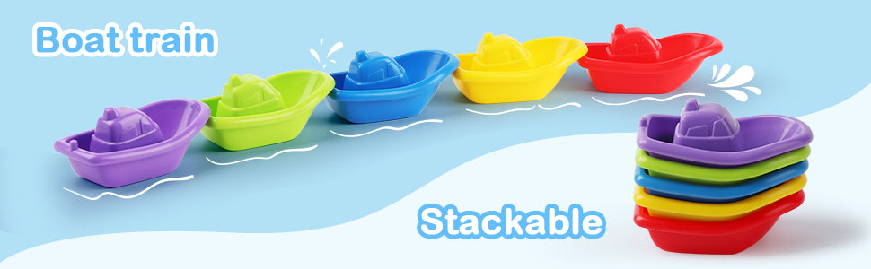 - Stacking Boat Train - 5 stackable floating boats can be linked together to create a "little boat train", which encourages your little one's hand-eye coordination.