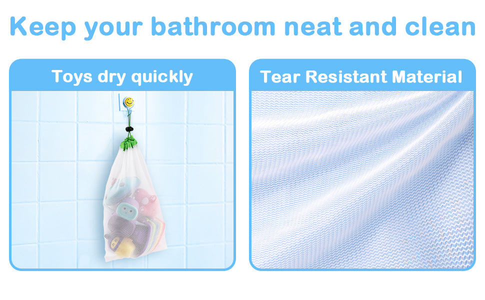 - Easy to Drain - Organizer net keeps all of your child's favorite bath toys within reach. Helps keep your bathroom neat and ready for the next bath time adventure.
