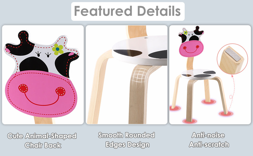 The cute animal chair is specially designed for kids and brings happiness to your children. Smooth surface, easily cleaned. Instructions and all components included. Each chair set has passed safety quality testing and is safe for children.