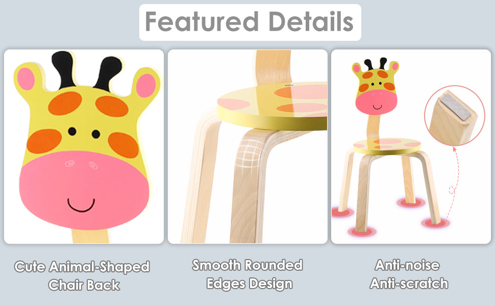 The cute animal chair is specially designed for kids and brings happiness to your children. Smooth surface, easily cleaned. Instructions and all components included. Each chair set has passed safety quality testing and is safe for children.
