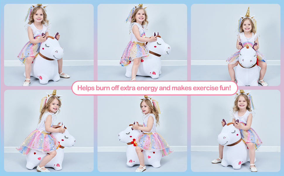 - Play Anywhere:Suitable for summer vacation, parties, classrooms, indoor & outdoor play. Stimulate your child's desire to ride a real horse. Children aged under two years old should always be under the direct supervision of an adult.