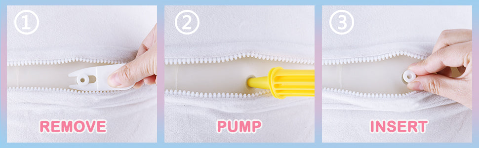- Easy Inflation: Remove the inserted white air stopper, insert the air pump and inflate the hopper to a proper size, then quickly replace the air stopper.