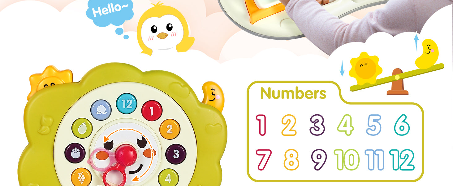 【Educational Activity Board】The rotating clock on infant busy board enables children to learn and recognize numbers and fruits. This interactive feature enhances their cognitive development while making the learning experience enjoyable.