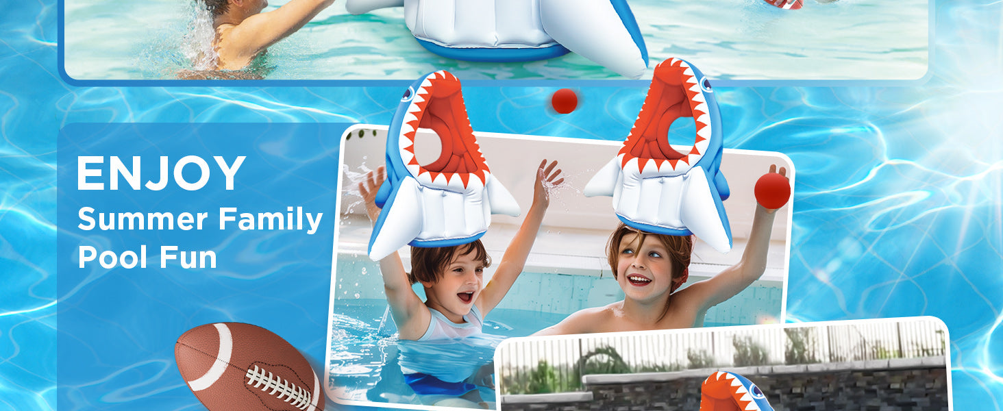 - ☀3-in-1 Fun Game☀ Our shark pool toy offer three pool games in one -basketball, football, head hoop toss game. It provides endless entertainment for both children, adults, and families. It can also be used as a drink holder, making it perfect for pool party supplies and favors