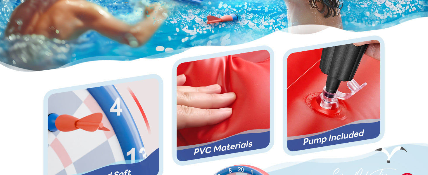 - 【Safe Materials for Kids】- The inflatable dart pool toy is made of qualified PVC plastic, which is long lasting and not easy to tear. It's the slam dunk of pool accessories and brings endless fun and challenges for kids!