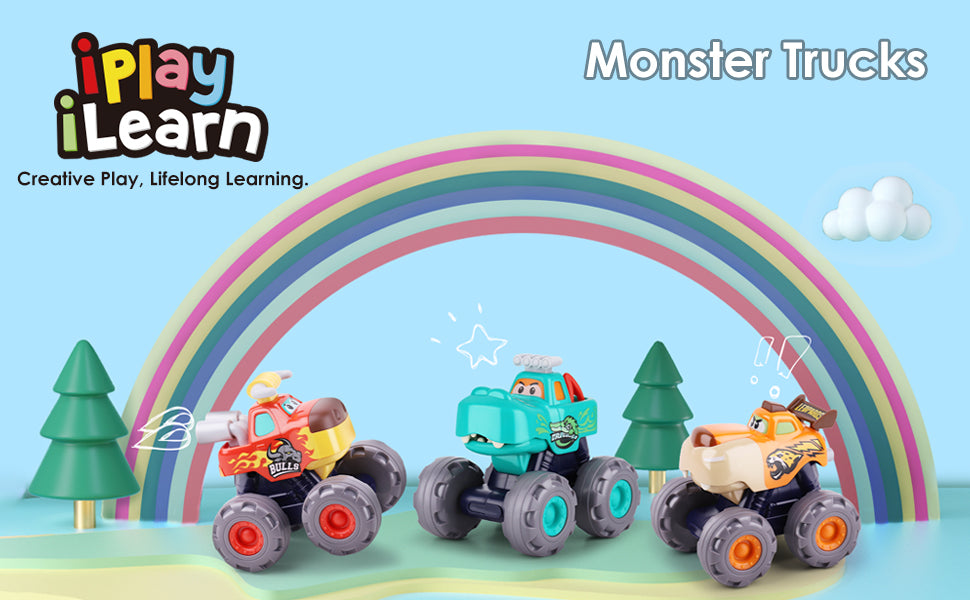 - Indoor/Outdoor Fun - Each truck size of 4.4'x 3.8'x 4.8' makes it easy to fit in a suitcase, bag, or pocket, Also, they are the perfect playdate toys! Share the fun of 3 large wheel trucks by having a race in the living room or outside friends and families.