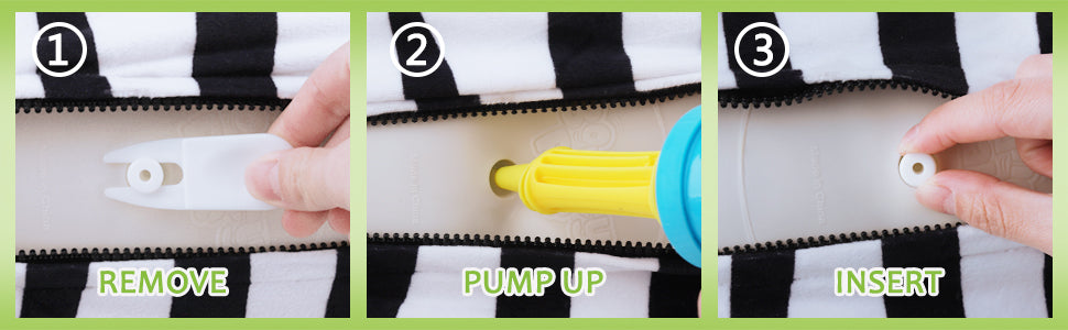 - 【Easy to Inflate】Zebra Plush Hopper Ships deflated but is easily inflated with included hand pump. Take out the inserted white plug (air stopper) from the hole on the belly; insert the tip of the pump and inflate the hopper to a proper size, then replace the white plug into the hole quickly.