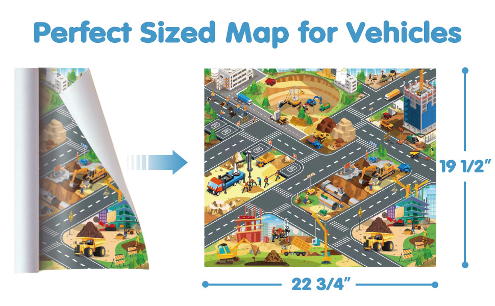 - 【Activity Playmat Included】Play mat is made of soft non-woven fabric, which has bright colors and is illustrated with vivid construction sites. Playmat included provides kids an immersive scene experience and enhances kids imagination and creativity further.