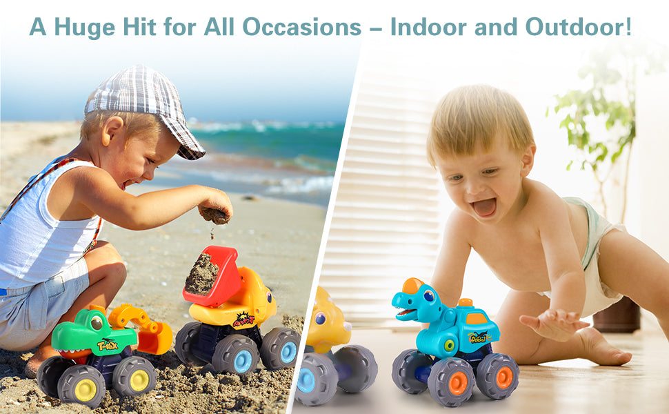 - 【Indoor/Outdoor Fun】Each truck makes it easy to fit in a suitcase, bag, Also, they are the perfect playdate toys! Share the fun of 3 large wheels trucks by having a race in the living room or outside friends and families.