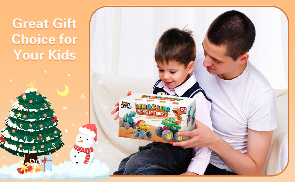 - 【Three Dino Monster Trucks】iPlay, iLearn monster trucks set include 3 Big Dino toy car figures model: T-Rex, Triceratops, and Plesiosaur. No battery needed energy-saving and environmentally friendly.