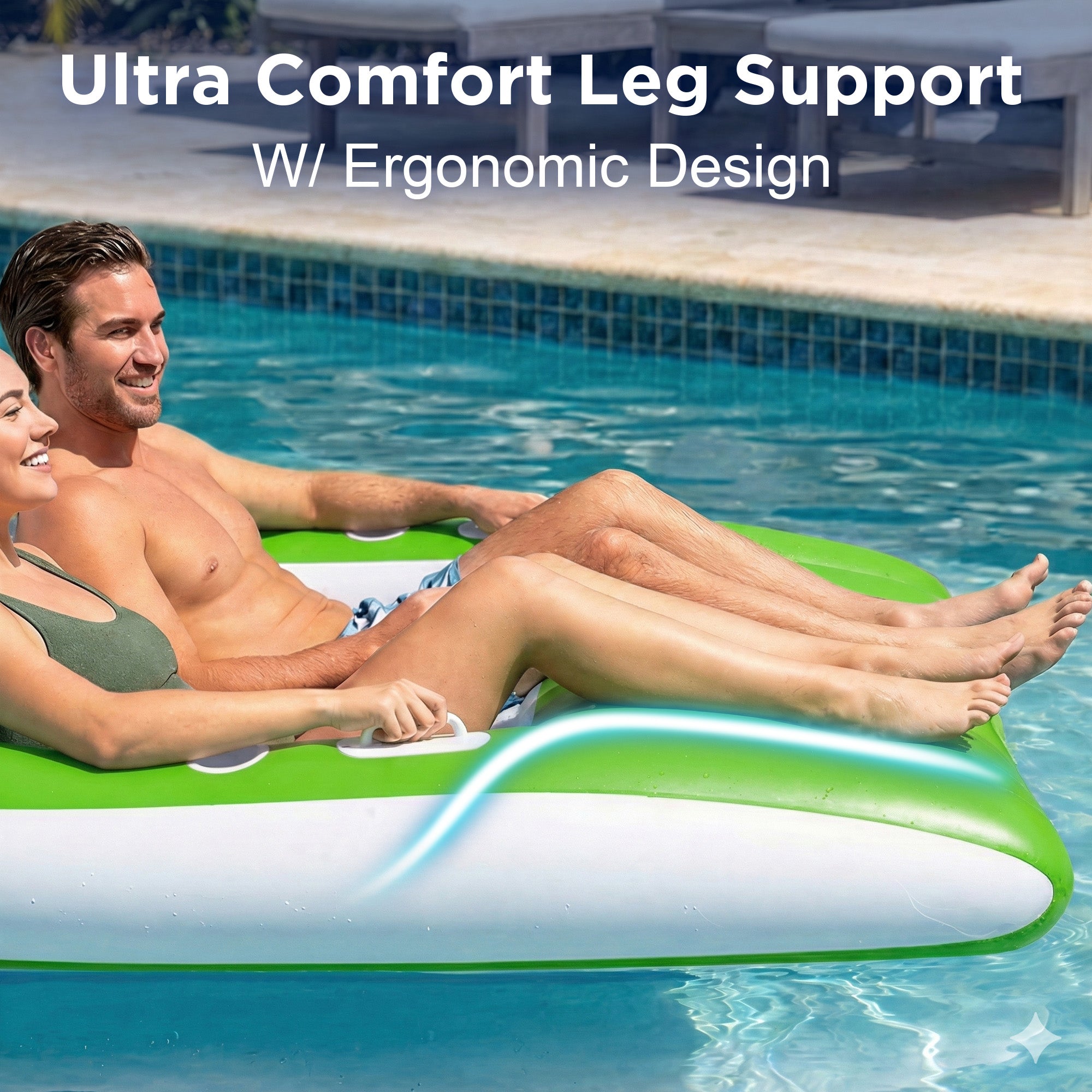 - 【Extra-Large Comfort】Sink into unmatched comfort with our inflatable pool lounge chair. Boasting a roomy 54" x 54" size, it delivers a stable, ultra-relaxing poolside retreat.