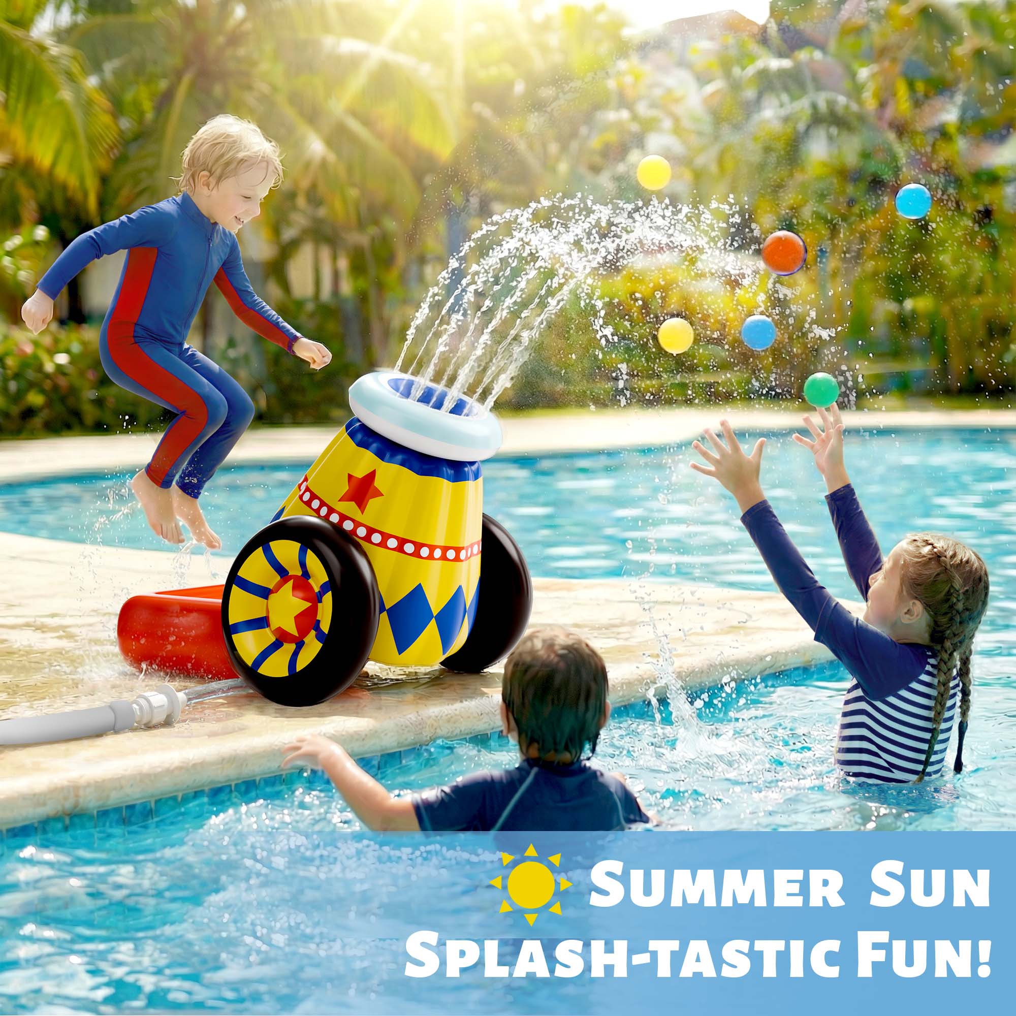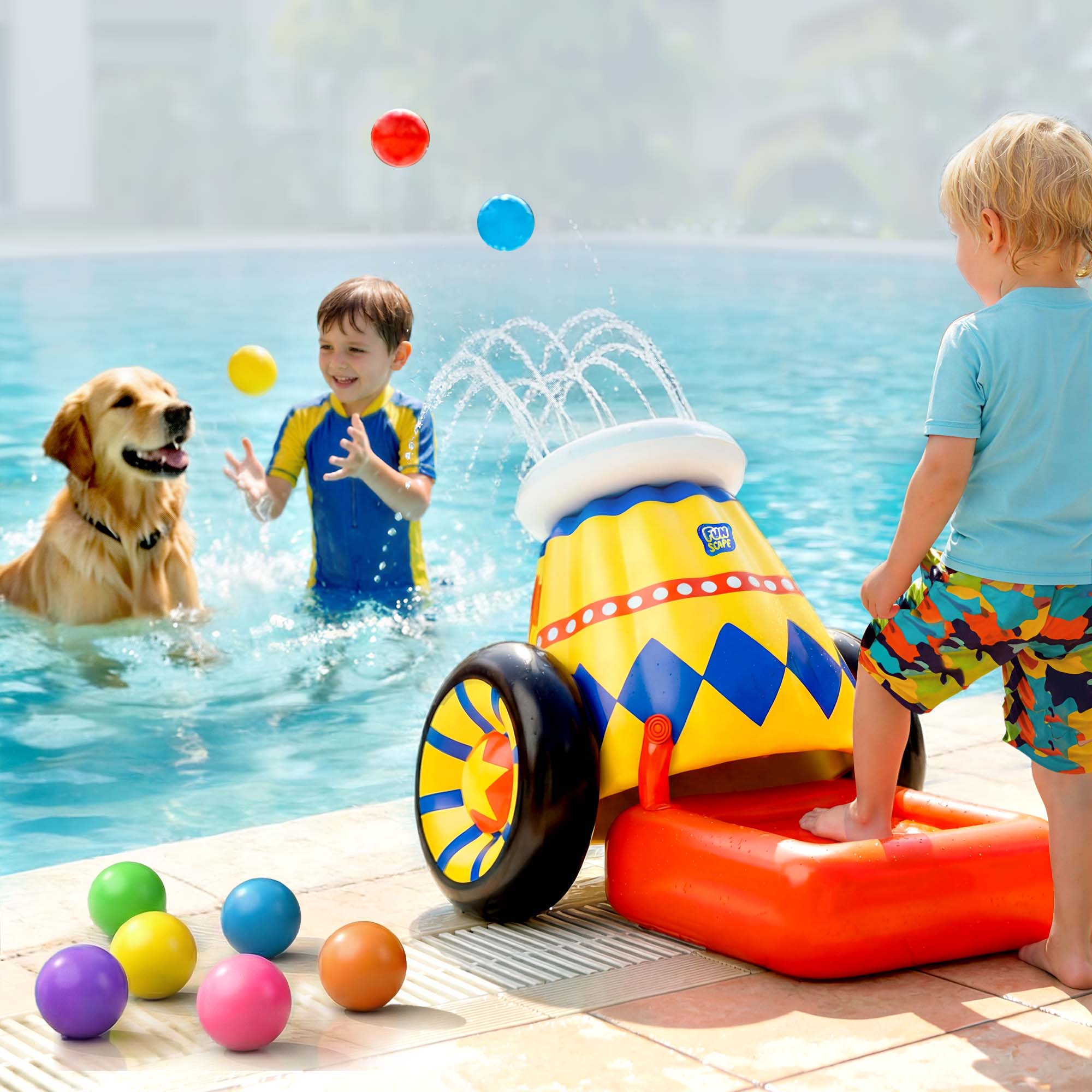 Funscape Inflatable Launching Ball Pool Toy, Kids Water Spray Ball Shooting Pool Game, Outdoor Poolside Yard Beach Activity Water Toy, Swimming Summer Party Gift 3 4 5 6 7 8 Year Old Toddler Boy Girl
