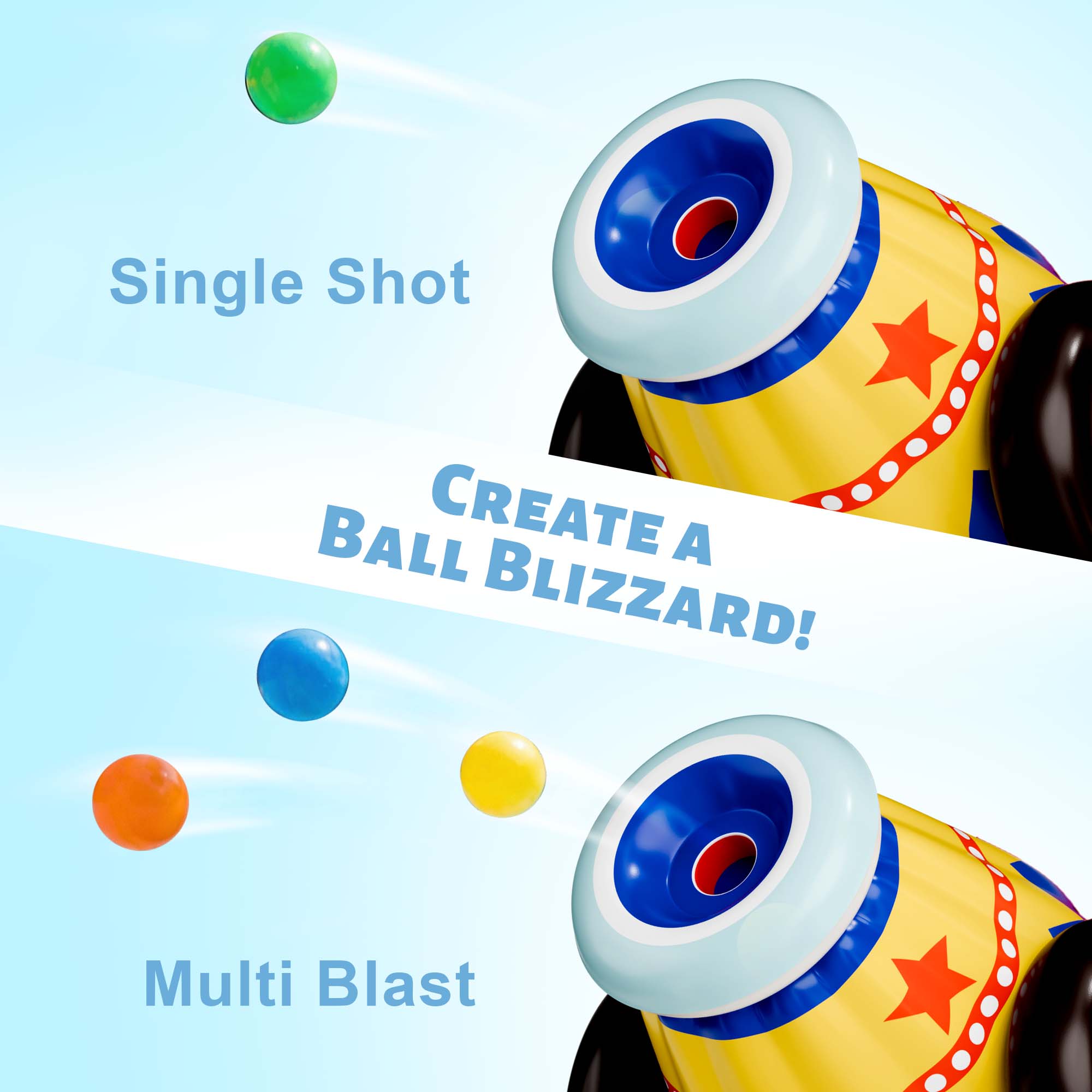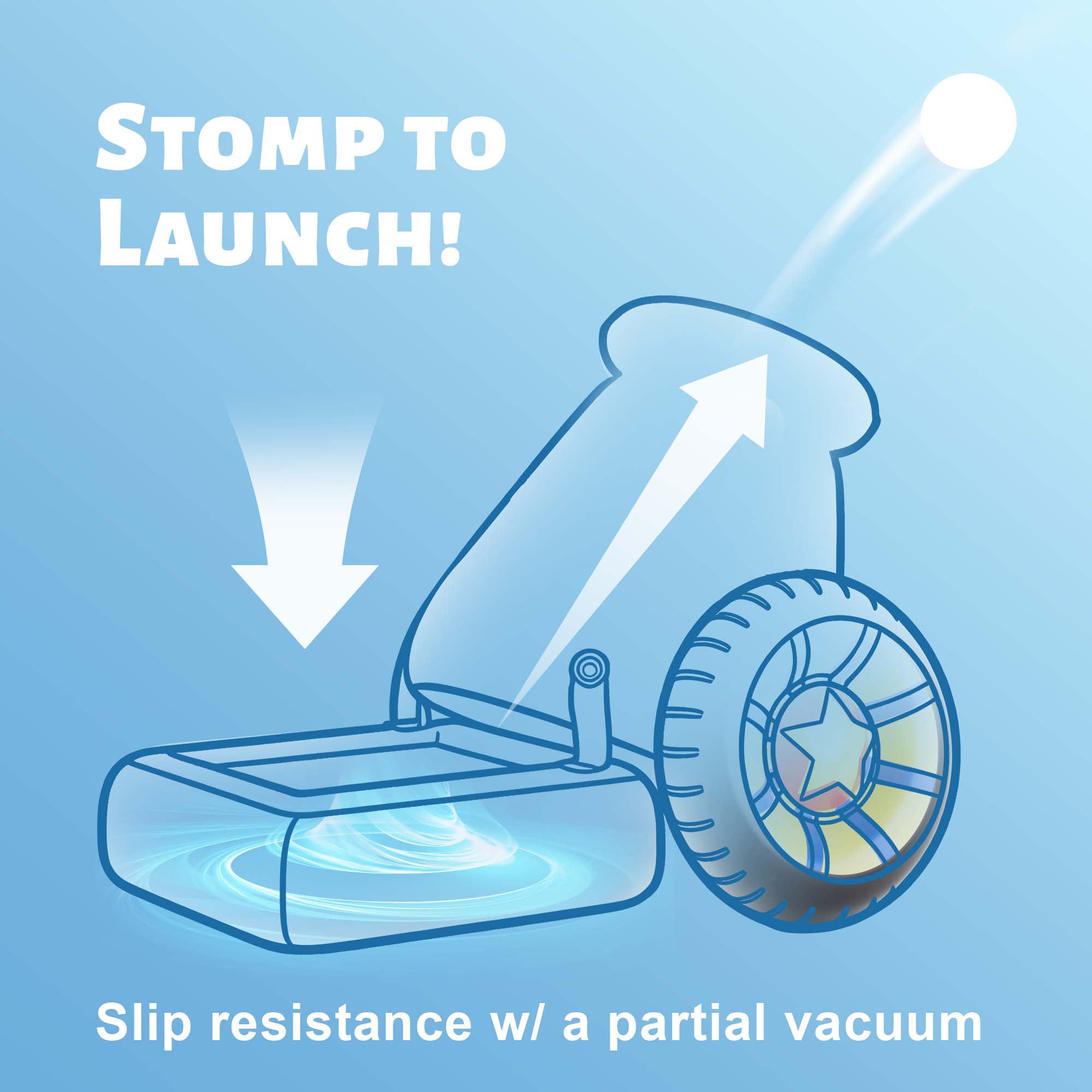 • 【Fun Ball Launching for Active Play】Unlock super fun with jumping and stomping! The stomp-launch design teaches cause and effect. Kids jump onto the sturdy air-filled base, which propels the ball through the chamber and out the artillery with surprising force. Great for developing motor skills and active, outdoor fun.