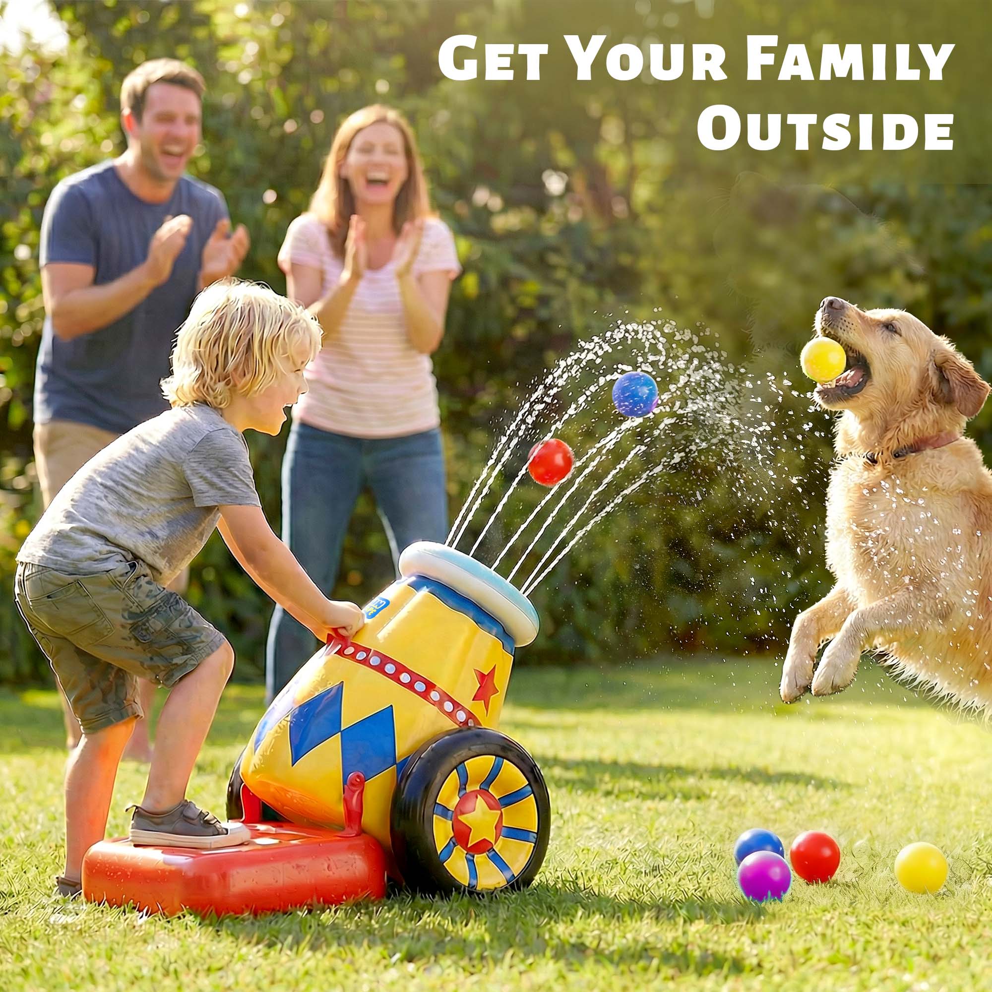 • 【Durable & Easy Setup】Made from high quality PVC materials, the inflatable design is soft and safe. Simply inflate the base and artillery body (air pump not included), connect the hose adapter to your standard garden hose, and you're set! No complicated assembly or tools required - just pure, instant fun.