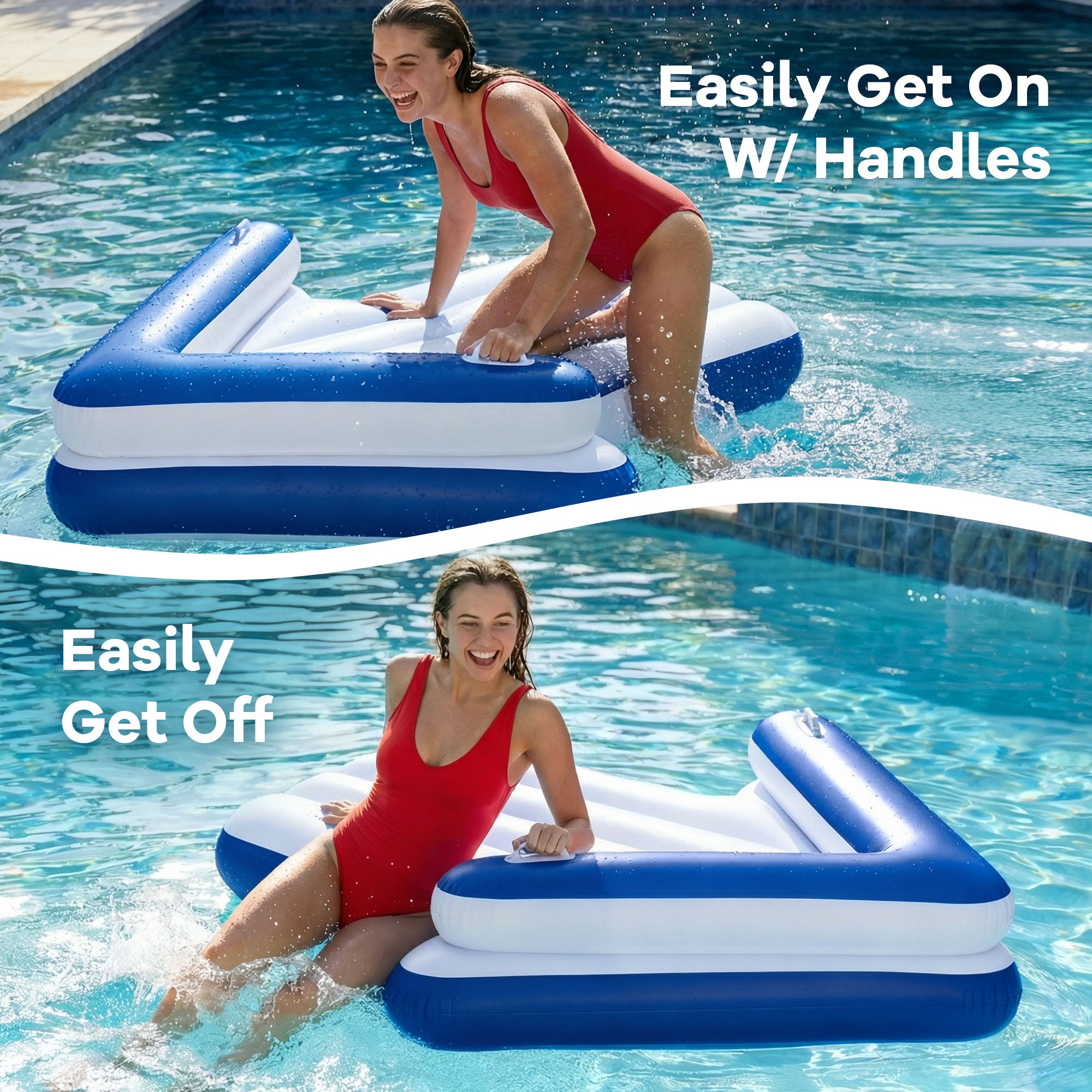 • 【Dual Handles for Enhanced Safety & Convenience】Equipped with double sturdy handles on the arrow structure, this inflatable lounger makes it easy for you to climb on and off with minimal effort, while the handles also provide extra stability to prevent accidental slips during use.