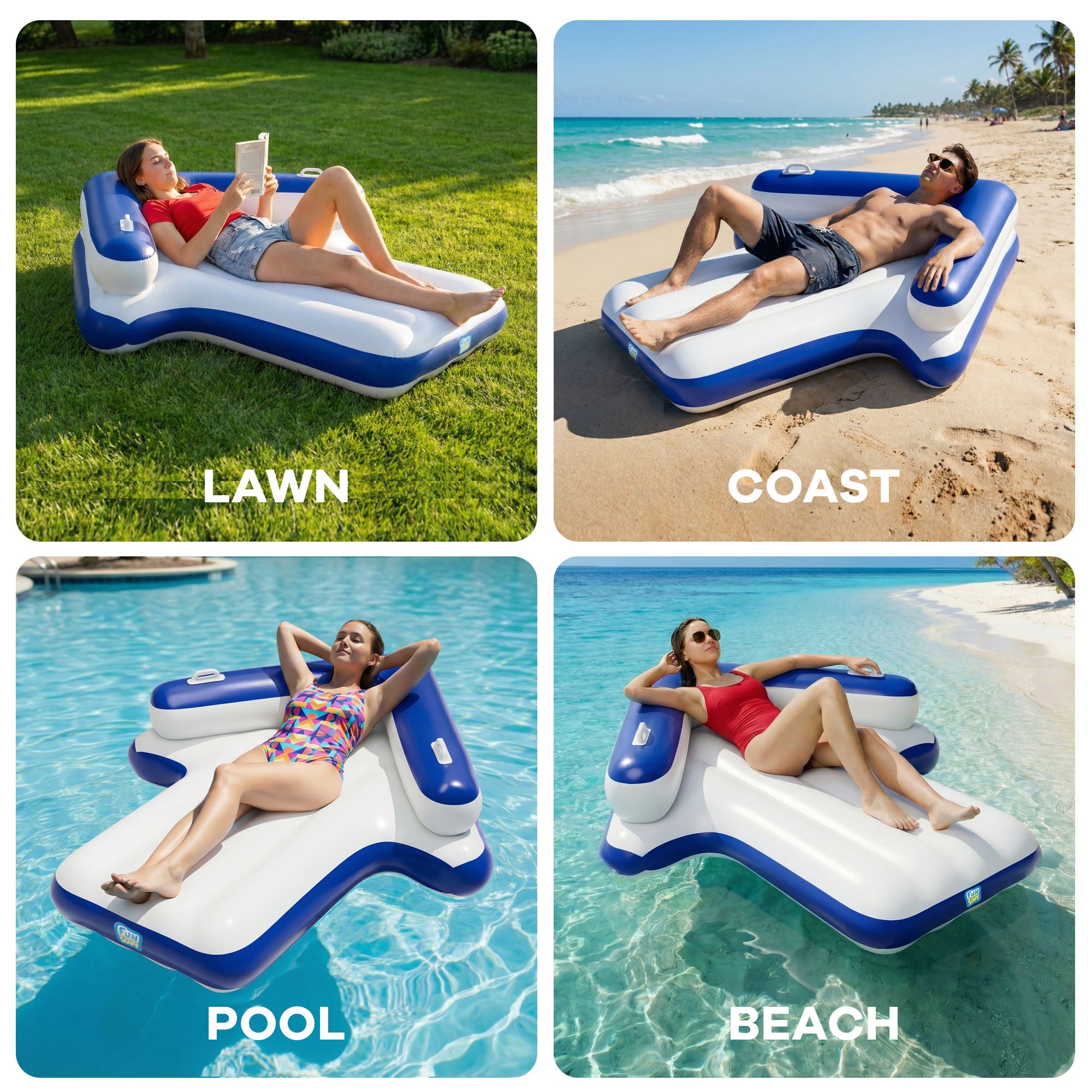 • 【Arrow Floate】Funscape’s proprietary arrow-shaped inflatable lounger is available in three distinct color options, which can meet the aesthetic preferences of different people at the same time and add a unique visual touch to your leisure time.