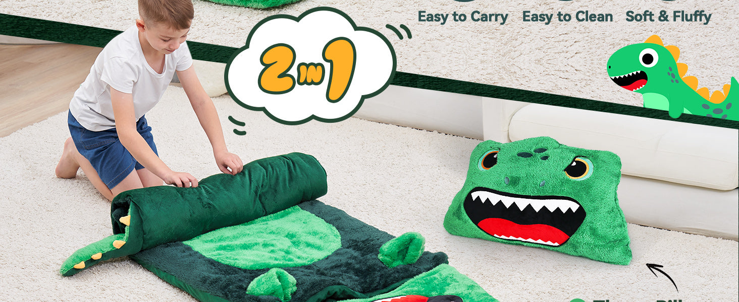 【Warm Gift Choice】It would be a perfect gift option for boys and dinosaur lovers. Suitable for Christmas, Birthdays, Children's Day, and Valentine's Day. This fun and colorful slumber sack is sure to be the center of attention at the next sleepover, take your child's bedtime adventure anywhere!