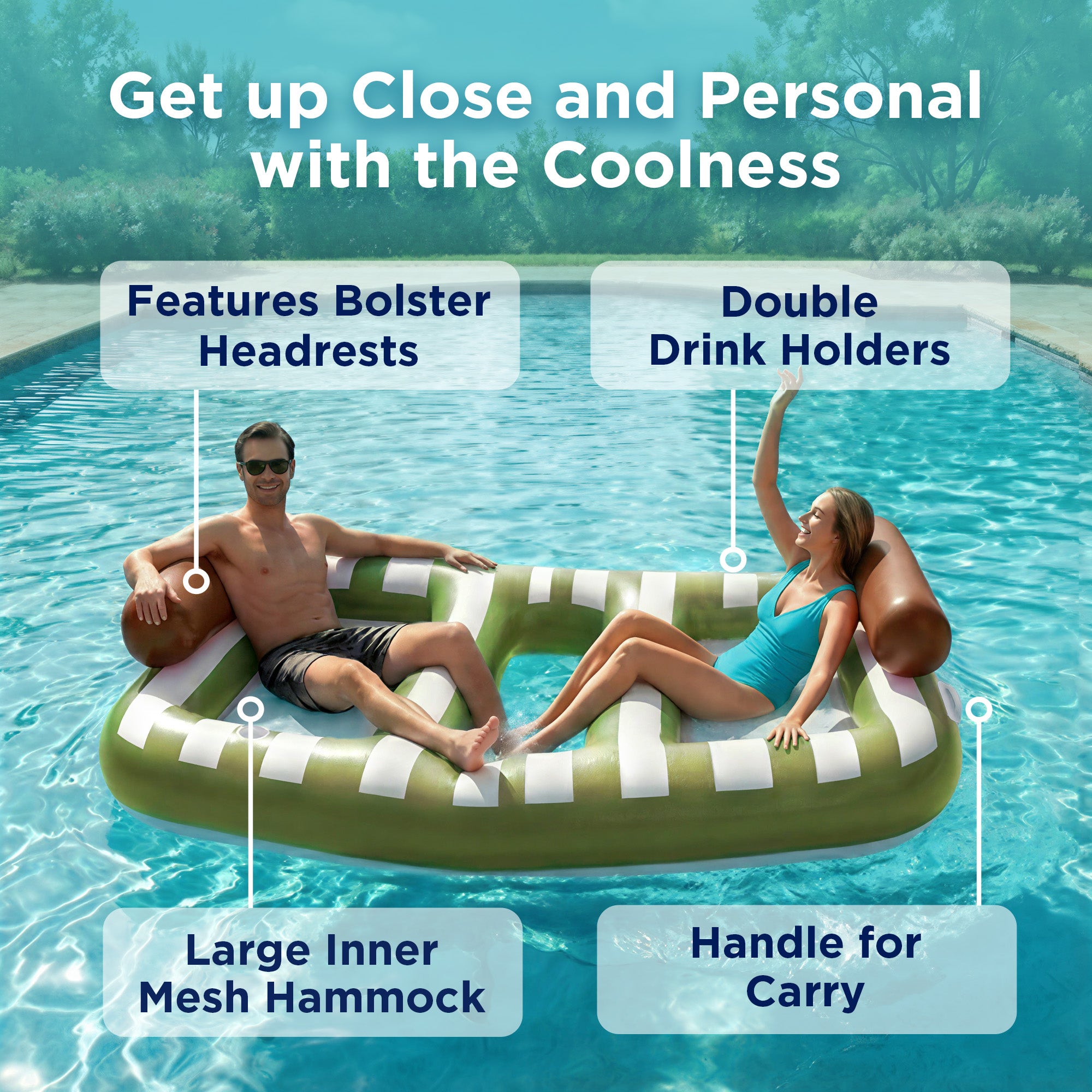- 【Spacious Double Size & Complete Accessories】87*53 inch double backrest float offers ample space for two people to relax together, coming with comfortable back pillows and two dedicated cup holders, making it super convenient for double use and perfect for sharing leisure time with your partner.
