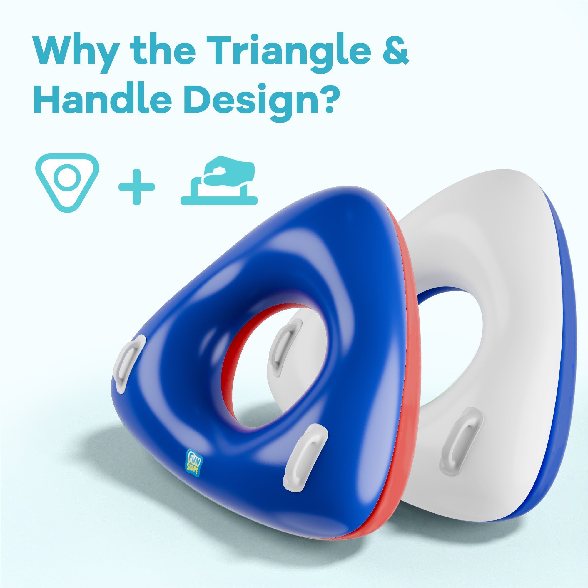 Funscape Large Triangle Inflatable Pool Float Tubes for Adult Kid, 2 Pack 44" Swim Floaties Ring w/Handles, Summer Tanning Water Floating Lounge, Beach Lake River Swimming Toy Pool Party Family Set 1