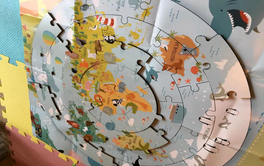 - Geography Education - This fun world map puzzle will develop kids imagination and creativity, also promotes their hand-eye coordination.